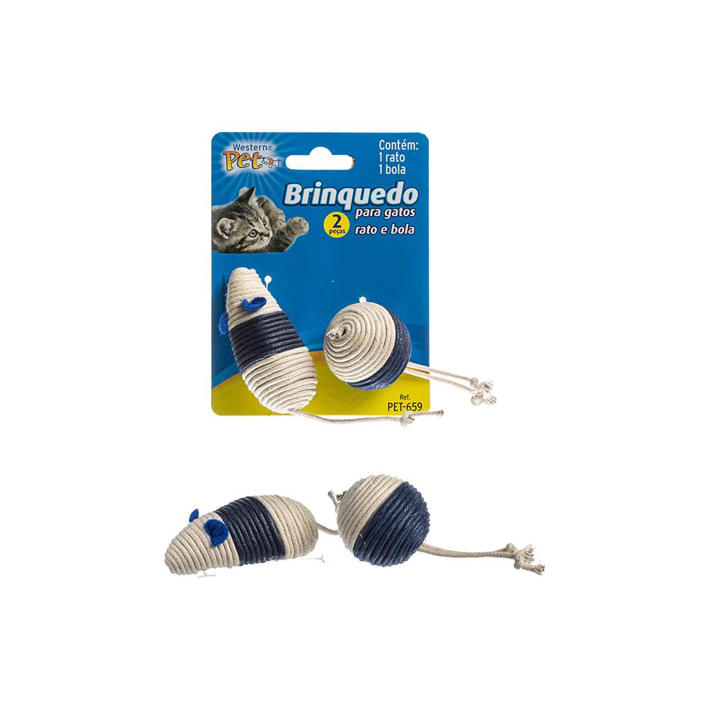 BRINQUEDO PARA GATO RATO E BOLA 2 PEÇAS