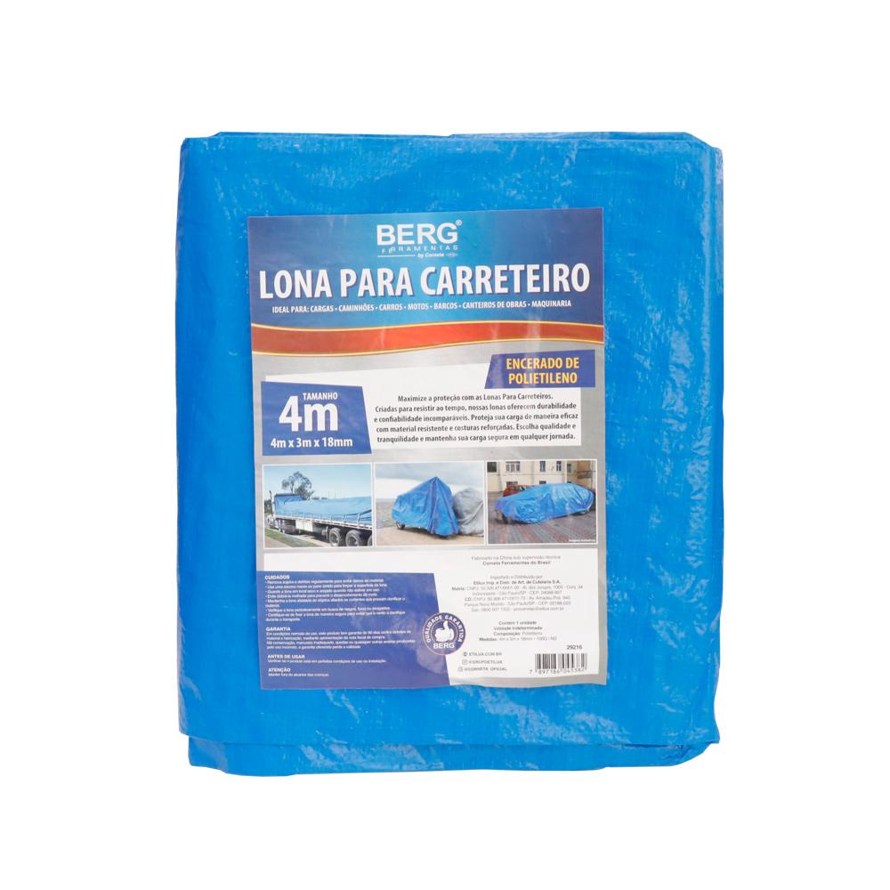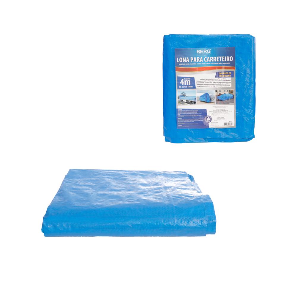 LONA PARA CARRETEIRO ENCERADA DE POLIETILENO 100G P/M2 AZUL 4 X 3 - BERG FERRAMENTAS