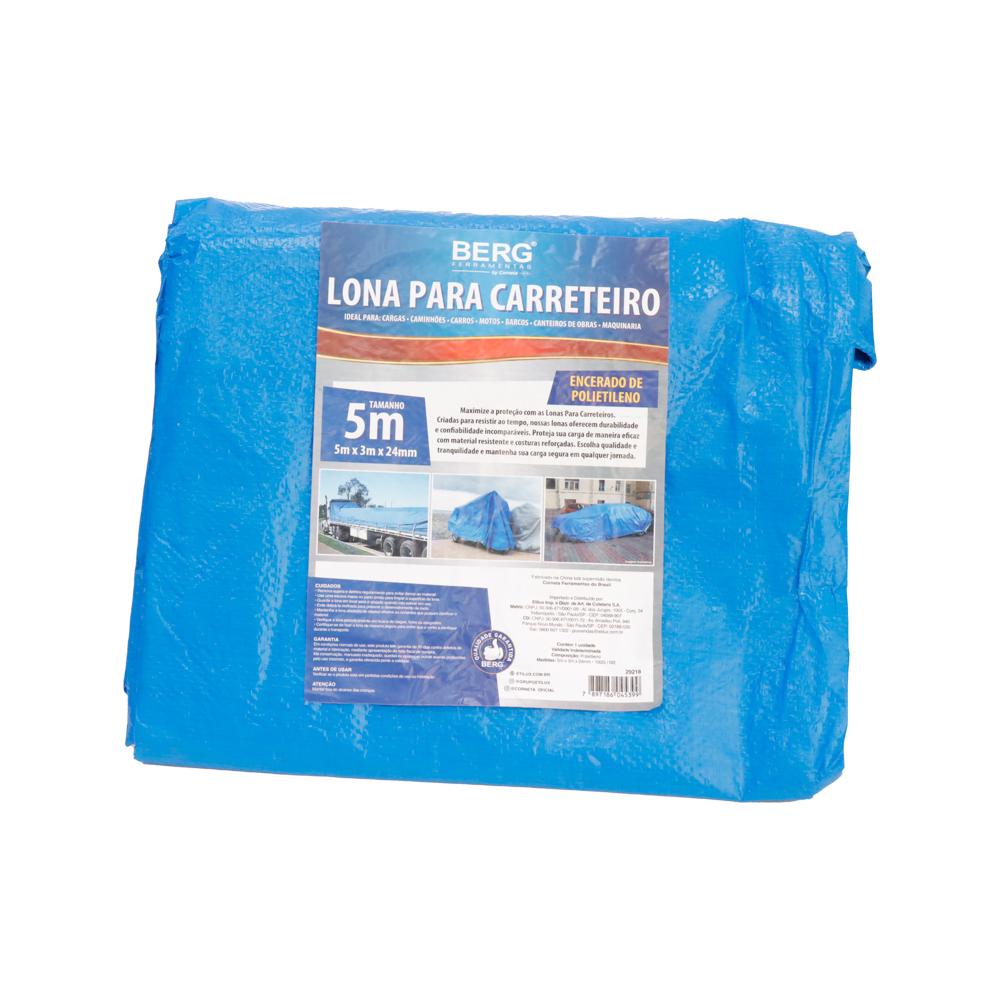LONA PARA CARRETEIRO ENCERADA DE POLIETILENO 100G P/M2 AZUL 8 X 4 - BERG FERRAMENTAS