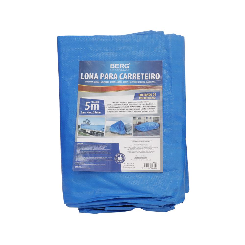 LONA PARA CARRETEIRO ENCERADA DE POLIETILENO 100G P/M2 AZUL 5 X 4 - BERG FERRAMENTAS