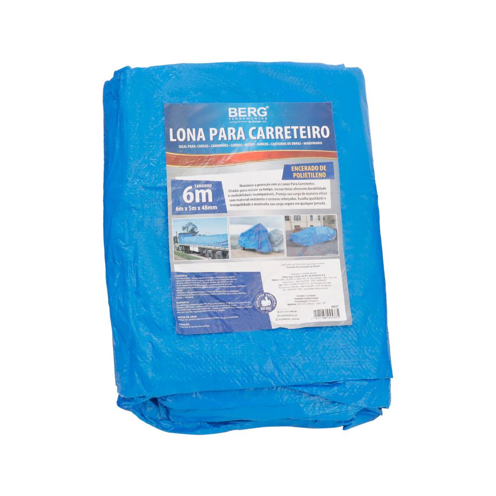 LONA PARA CARRETEIRO ENCERADA DE POLIETILENO 100G P/M2 AZUL 6 X 5 - BERG FERRAMENTAS
