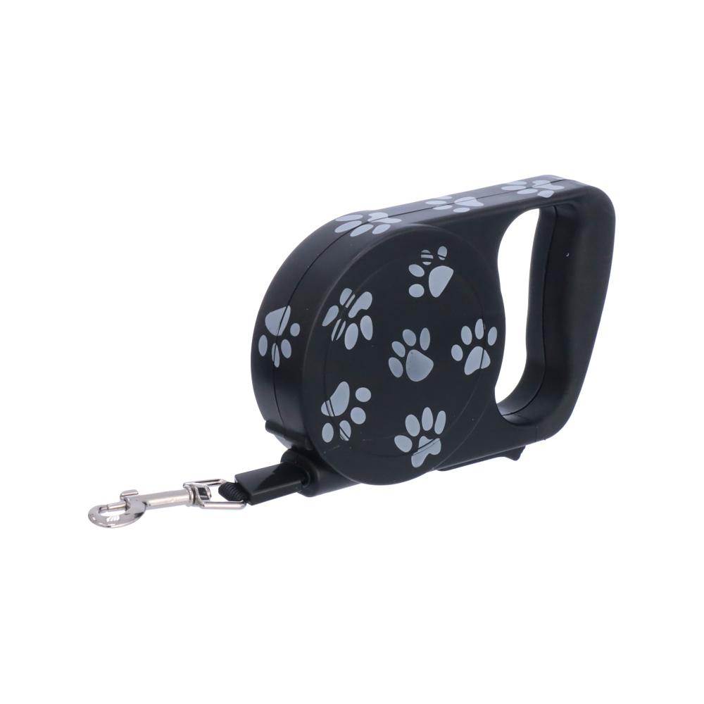 • A guia é retrátil e a fita vai desenrolar e enrolar livremente conforme o movimento do cão.