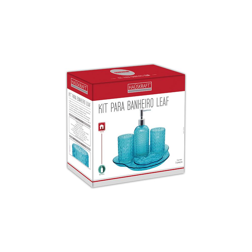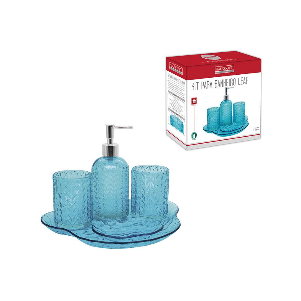 KIT PARA BANHEIRO LEAF AZUL 5 PEÇAS