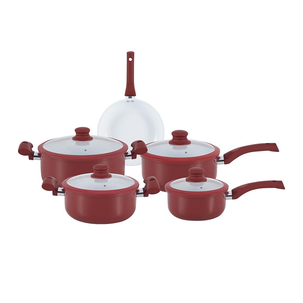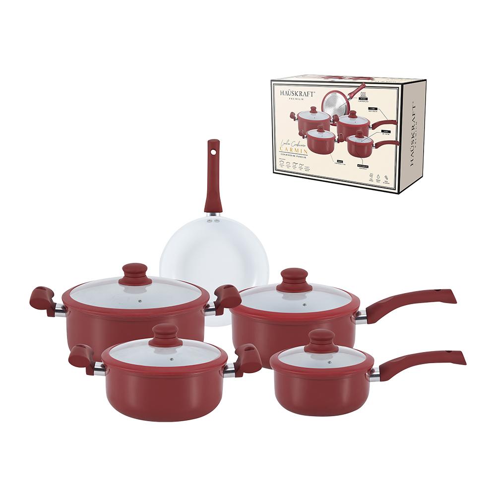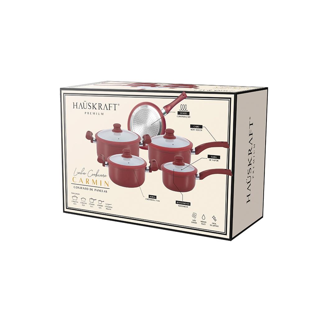 JOGO DE PANELAS COM INDUÇÃO CARMIN VERMELHA 5 PEÇAS
