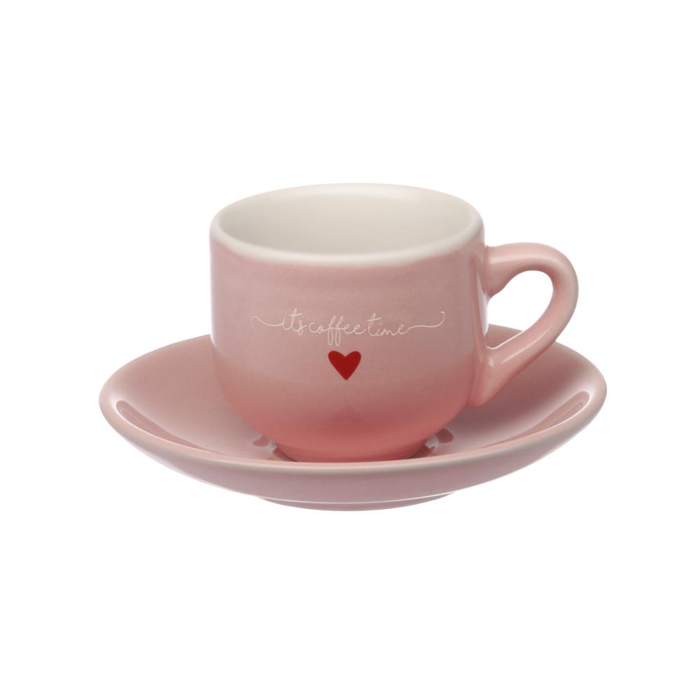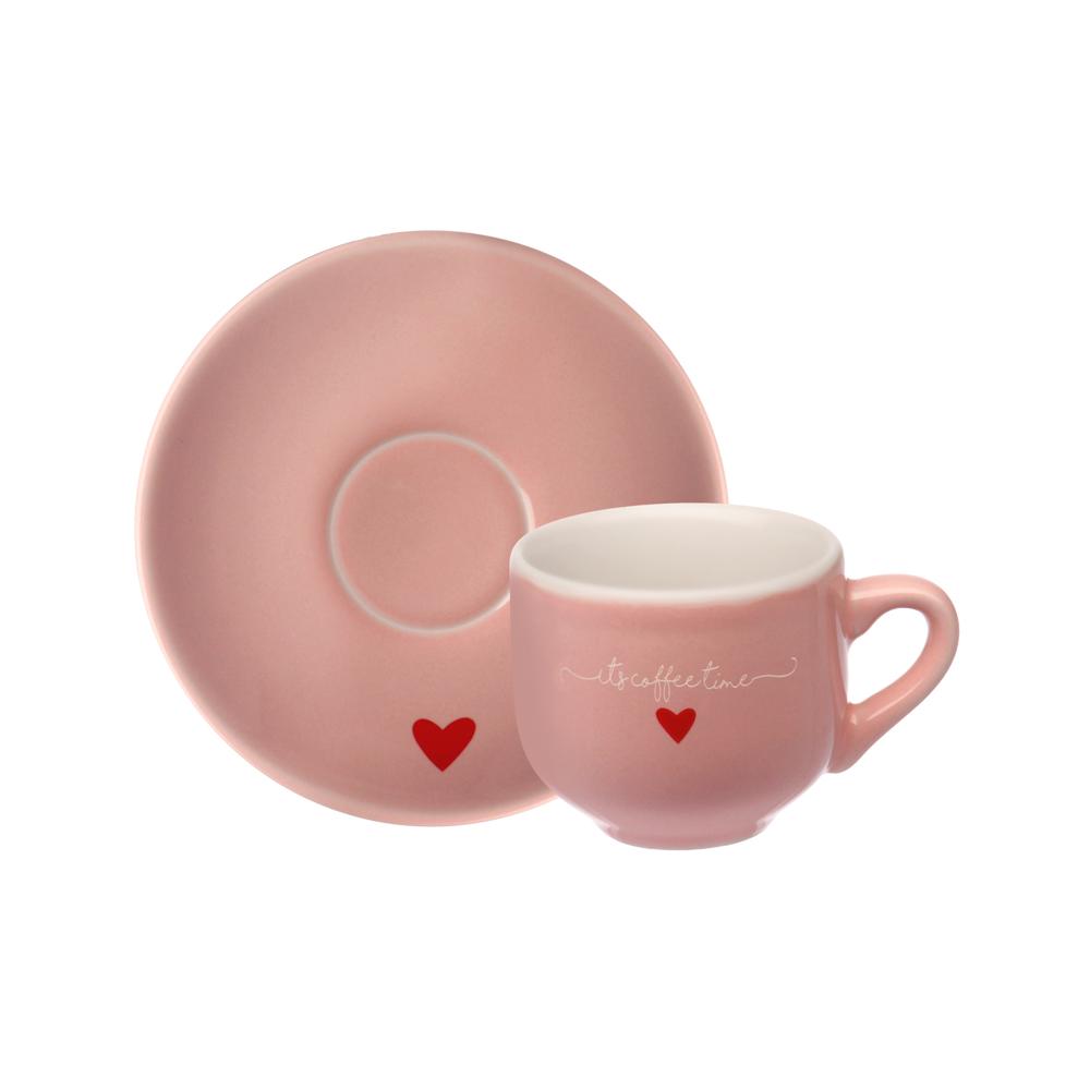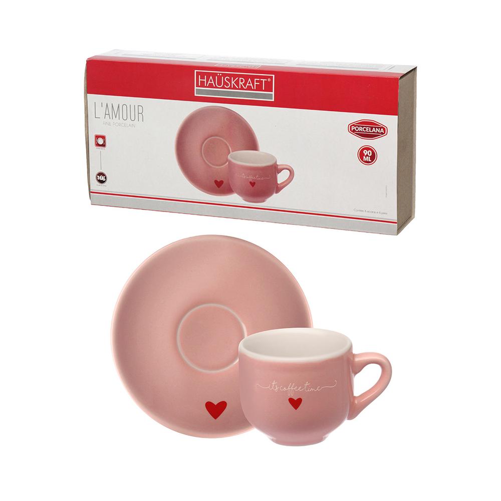XÍCARA PARA CAFÉ COM PIRES DE PORCELANA L'AMOUR ROSA 90ML 6 PEÇAS
